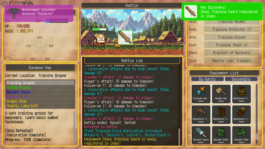 Desktop Pomeranian Fantasy is an idle RPG that runs on your desktop. Your character automatically explores dungeons, battles monsters, and collects equipment while you work or play other games. Check in during breaks to find level-ups and legendary loot. No control needed.