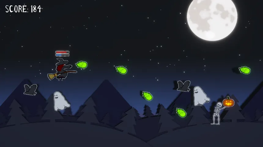 Twilight Flight предлагает простой, но увлекательный геймплей. Управляйте ведьмой с помощью всего пары клавиш (A/D или стрелки) и мчитесь вперед, уворачиваясь от жутких существ и метко бросая огненные шары. Каждый шаг, каждое уклонение и каждый выпущенный огонь – это шанс на более высокий результат!