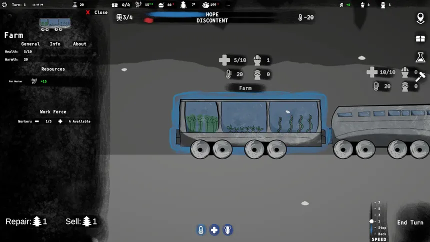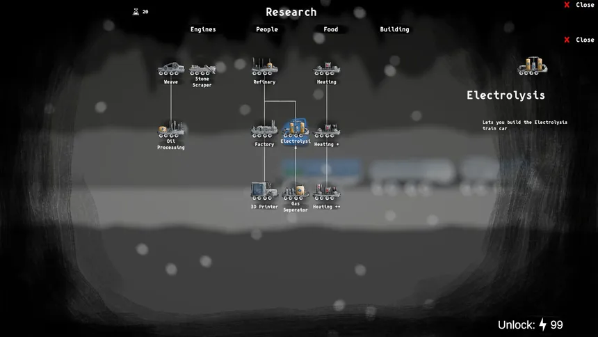 Frost Loop is a survival city builder set on a train in the snow. Build, Manage, and Pilot the train carrying the last of humanity in a world of snow and storms. Can the warmth of humanity survive on the run? Or is it destined to go cold.