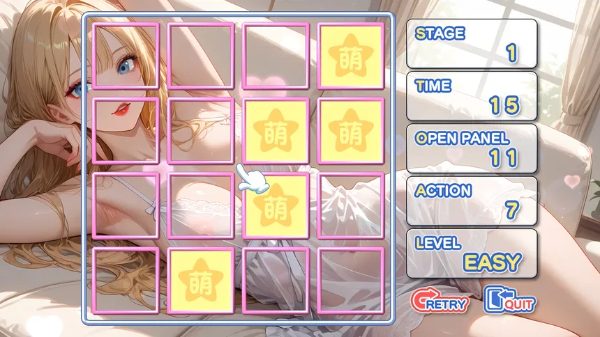 Полна сексуальных иллюстраций, посвящённых дамам в час заката! Чем выше сложность, тем ярче проявляется их очарование. Используй интуицию и воображение, чтобы решать головоломки и собирать сексуальные иллюстрации!