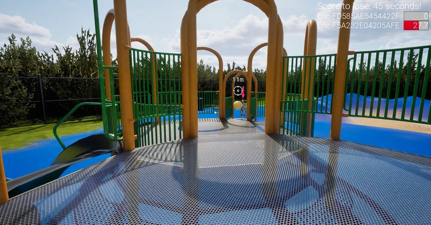 Ball Tag is tag.... with a ball. This first-person multiplayer game challenges you to avoid being IT for a total of 45 seconds. Pick up the ball, throw it at another player to make them IT, and keep your timer from hitting the time limit.