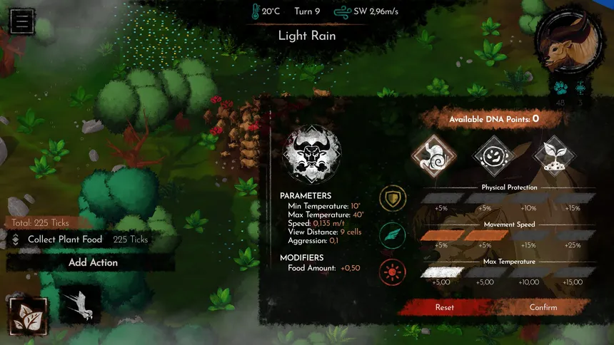 Ваша цель - предотвратить полное вымирание вида. Экосистема реагирует на каждое ваше решение. Голод, хищники и климатические изменения будут постоянно испытывать пределы эволюции.