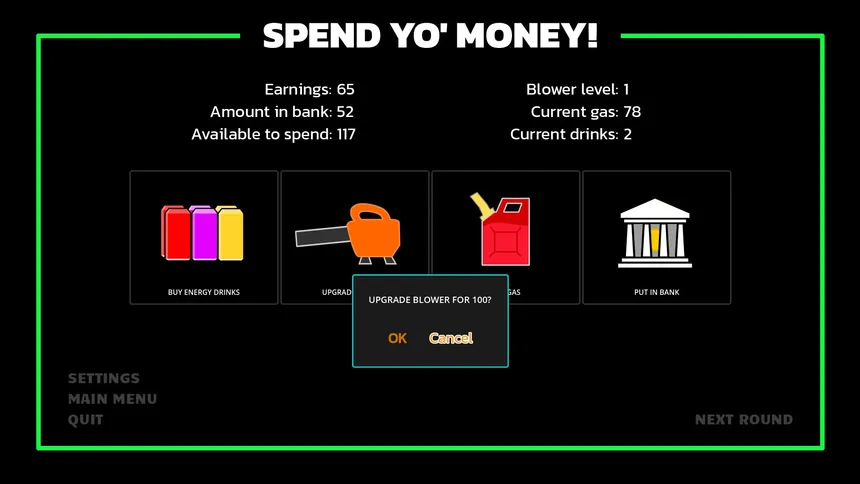 Leaf Blower Something — игра от компании Screw Propellers Games, разработанная для платформы PC. Проект совмещает в себе такие жанры и элементы, как аркада. Дополнительно игроки выделяют такие особенности игры, как иммерсивный симулятор, шутер с видом сверху, казуальная игра и аркада. Игра рассчитана на одиночное прохождение, многопользовательские режимы не предусмотрены.