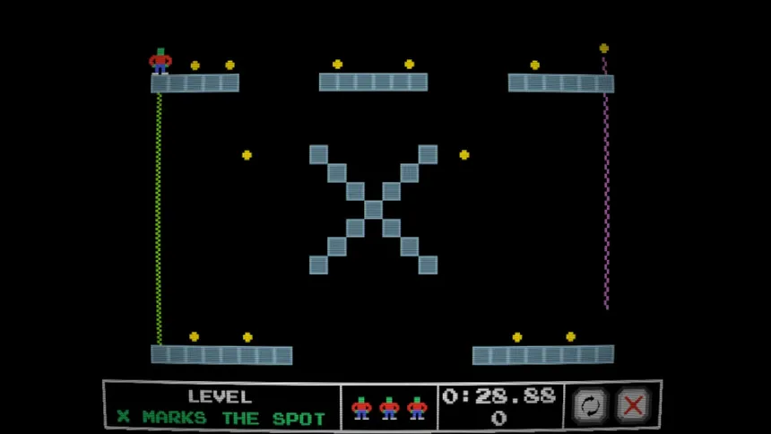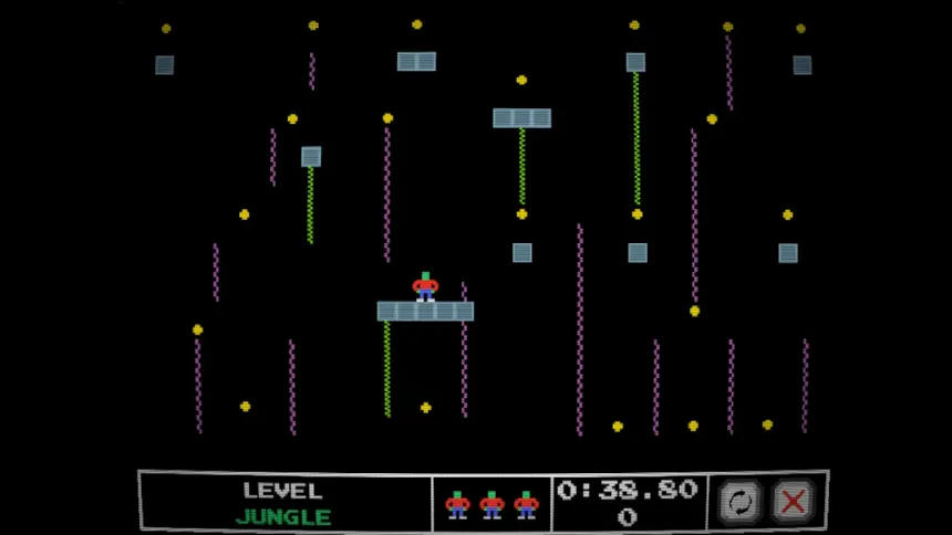 Jimmy Jumps is a skill-based, retro platformer that combines the simplicity of classic 8-bit platforming with competitive speedrunning. Enjoy over 90 hand-crafted levels to master! Race against the clock, find hidden mechanics, collect all the coins, and get your initials on the leaderboard!