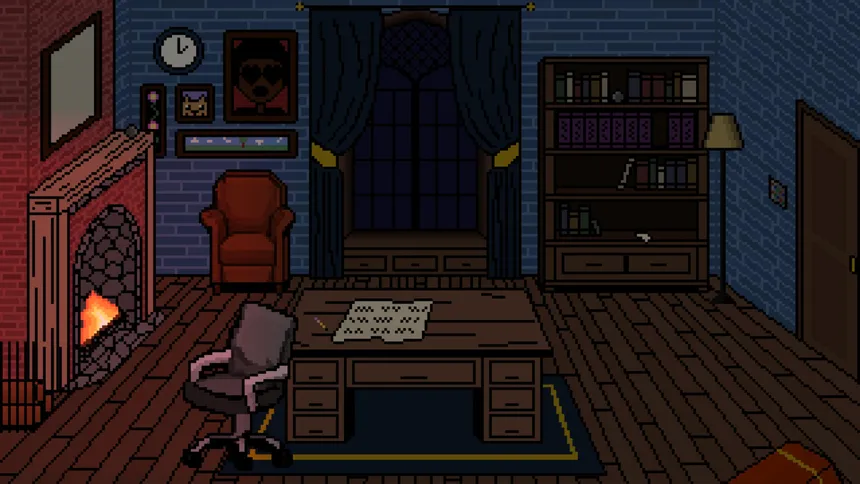 The Enigma Lounge is a hand-pixeled, point and click escape room puzzle game. It features a cozy yet mysterious vibe, and a small but tricky set of interconnected puzzles that must be solved in order to escape.