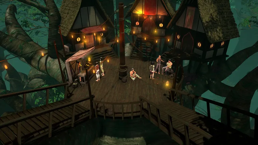 A stylized point-and-click adventure set high in the forest canopy. Talk to villagers, ride ziplines and wooden cable cars, and solve gear-and-pulley puzzles as you uncover the forest’s forgotten history.
