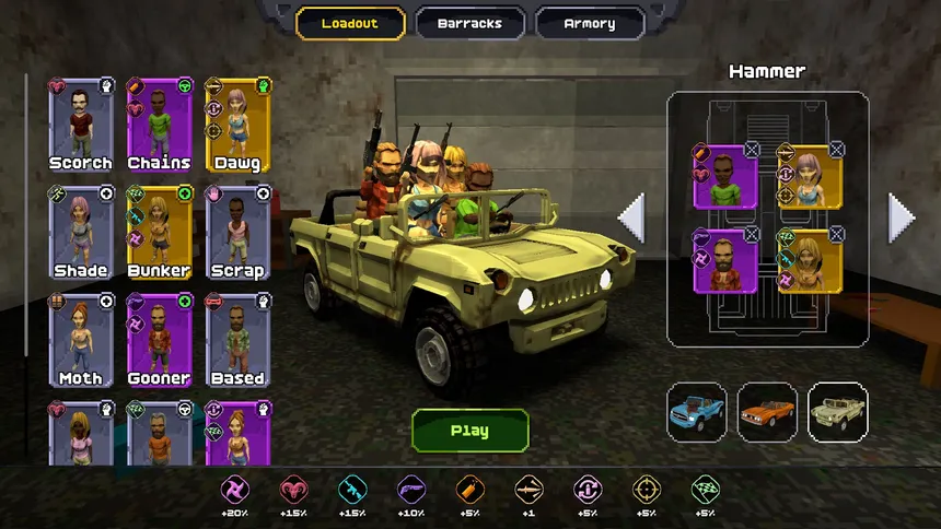Drive, shoot, and survive huge zombie swarms in a top-down roguelite where you build a squad, upgrade your car, and create wild hero synergies. Procedurally generated heroes, weapons and levels.