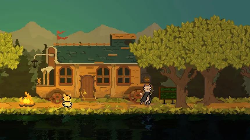 You set off with a caravan full of cats to find a safe place to settle! Gather resources, set up a base, defenses, give your cats work to do! Manage your base, expand, defend it from monsters and make it a nice place for your fellow cats!