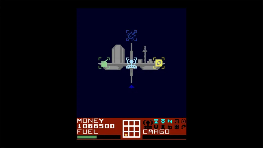 You take the role of a miner piloting the Domestic Cat spaceship to make as much credits as you can by mining asteroids through sectors composed of nine randomly assorted sub-sectors.