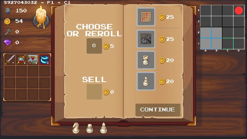 Chess Untold is a roguelite chess adventure with items, loot, merchants, and bosses. Explore the chess kingdom, find the white queen, and break the black wizard's curse!