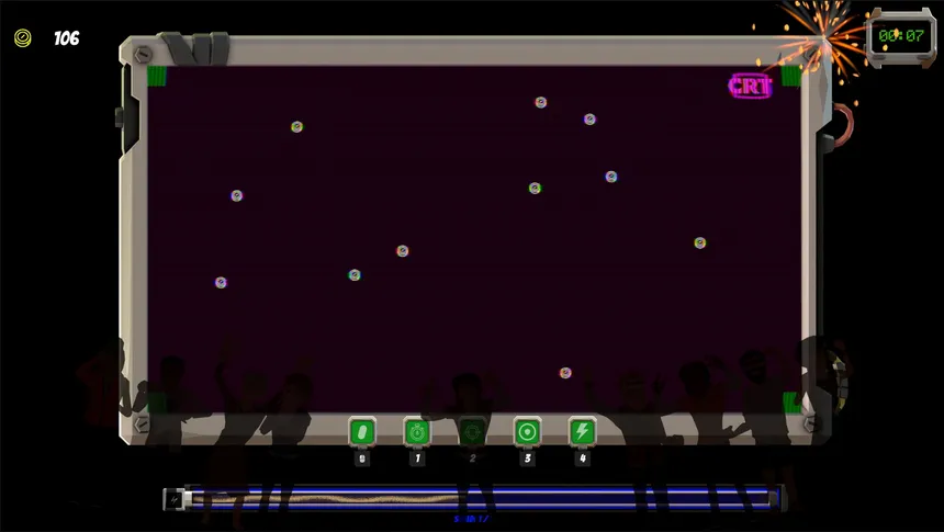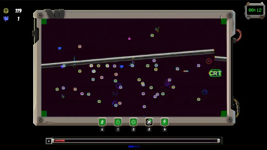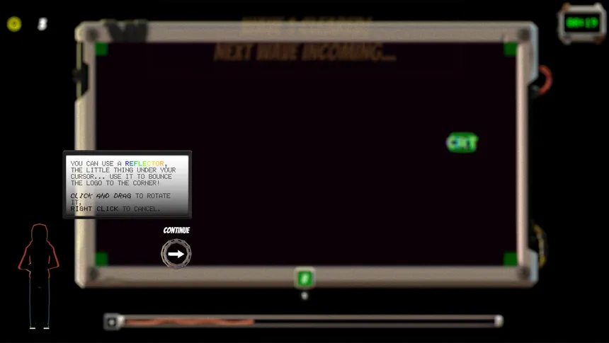 CRT: Corner Right There! is a fast-paced, incremental roguelite filled with arcade nostalgia. Don't just stare at the screen waiting for the logo to hit the corner... make it happen! Get resources, fight off glitchy interferences, and stack upgrades in this JUICY quest for the perfect bounce.