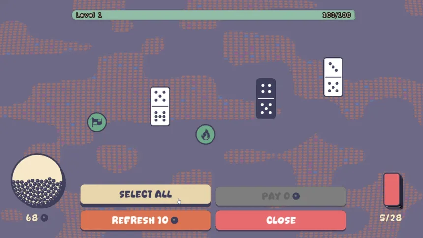 Собирайте “пипсы” за каждую успешную игру и тратьте их в магазине, чтобы усилить свою колоду. Новые плитки домино с уникальными значениями, мощные баффы, меняющие правила игры на поле, и способности, ломающие привычные рамки – всё это поможет вам выковать неповторимую стратегию. Но помните: даже самый продуманный план может рухнуть в одно мгновение.