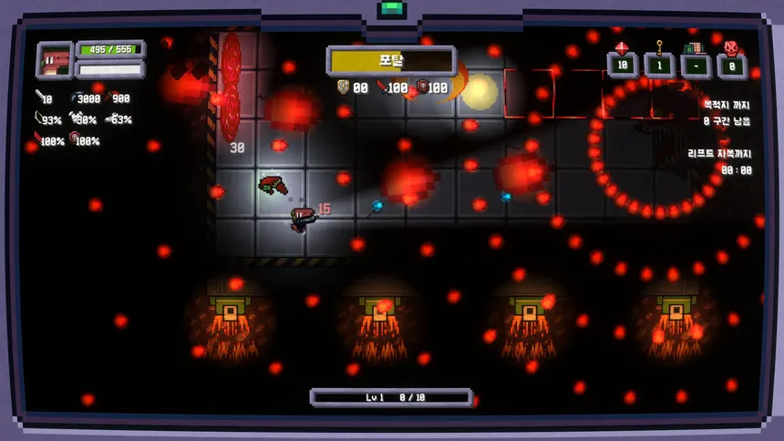 Deep Down Dinos is a 2D top-down shooting roguelite where players explore unknown depths shrouded in darkness. On a narrow, confined exploration lift, players must fend off waves of enemies while venturing as deep as possible.