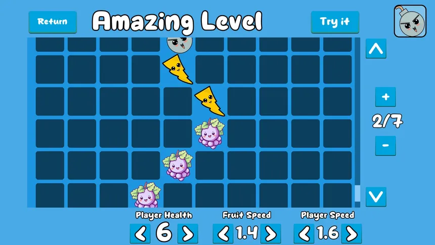 Test your reflexes by catching fruits each level everything is faster and different, how far can you reach? but be careful of the bombs!