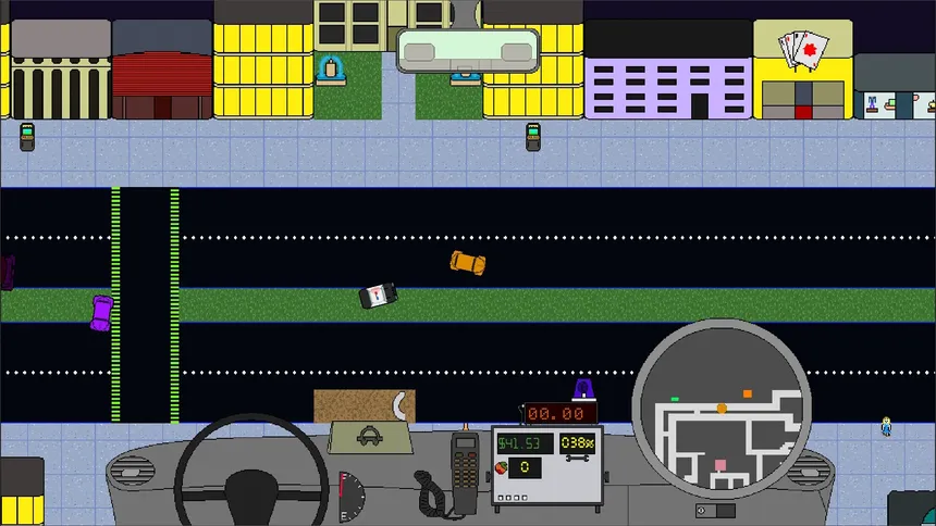 A top down arcade-style taxi simulator featuring vehicle upgrades, multiple unlock-able levels and light business management