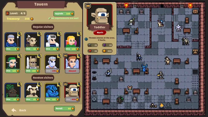 Каждая попытка прохождения уникальна благодаря элементам рогалика – случайные события, разнообразные острова и биомы, сменяющиеся квесты и неожиданные открытия. Развивайте шахты, нанимайте героев в таверне, каждый со своими причудами и уникальными способностями, и готовьтесь к ночной обороне. Ваша задача – выстоять против волн адских существ, укрепляя замок и грамотно расставляя защитников.