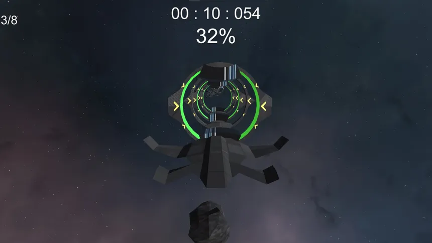 Вас ждут 8 уровней, которые постепенно усложняются, требуя все большей точности и скорости. Маневрируйте между кольцами, используйте ускорение, но будьте готовы к тому, что каждый следующий уровень будет быстрее и сложнее предыдущего. Попробуйте пройти все уровни на скорость!