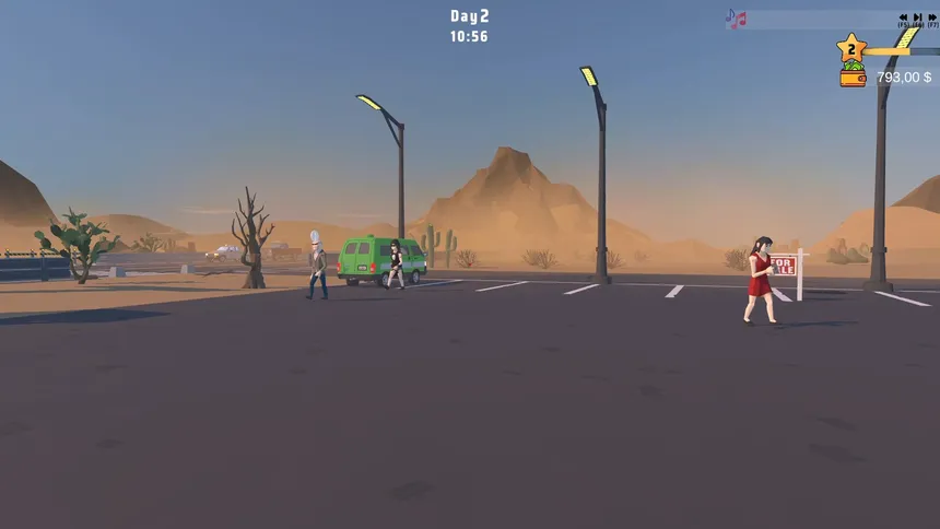 Приключение начинается: от скромной придорожной стоянки до огромного комплекса на Трассе 66! Наводи порядок, пополняй полки, держи туалеты в идеальной чистоте, иначе банкротство! Ресторан, магазин, туалеты и классический американский дайнер ждут тебя!