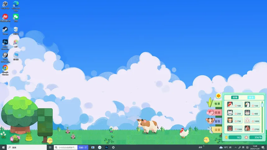 Create your personal oasis in the corner of your desktop. This is a laid-back idle simulation game where simple clicks allow you to grow plants and feed adorable animals. Watch them thrive and multiply, receive surprise letters and gifts, and let the serene ambiance of nature fill your screen.