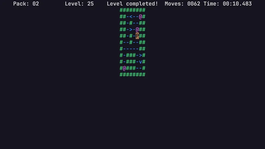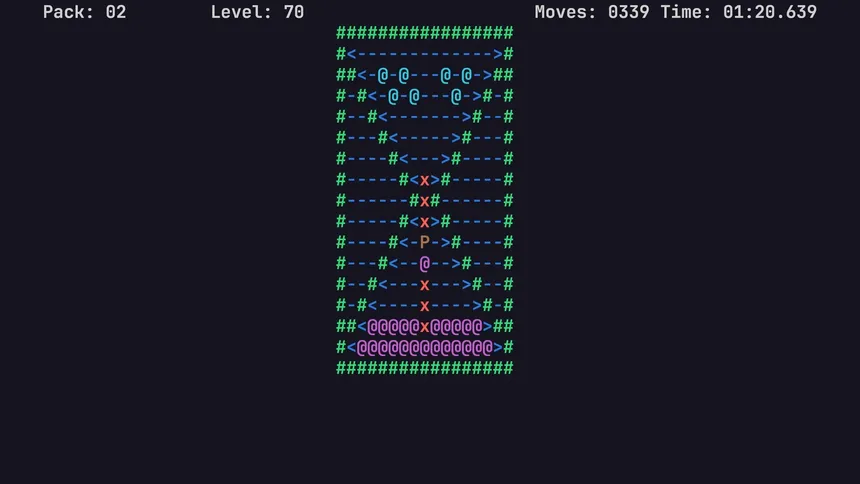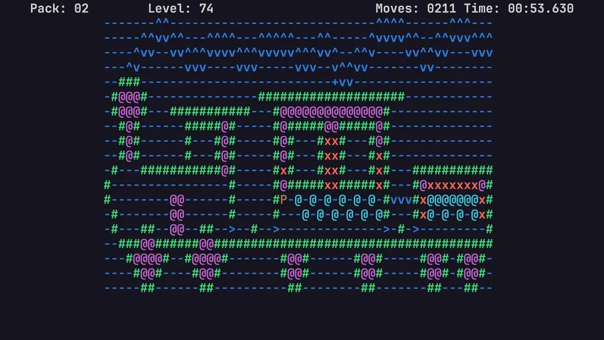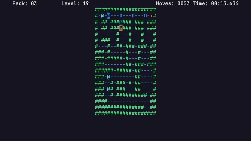 An ASCII-based Sokoban game with unique gameplay mechanics. Test your puzzle solving skills on more than 200 completely new levels.