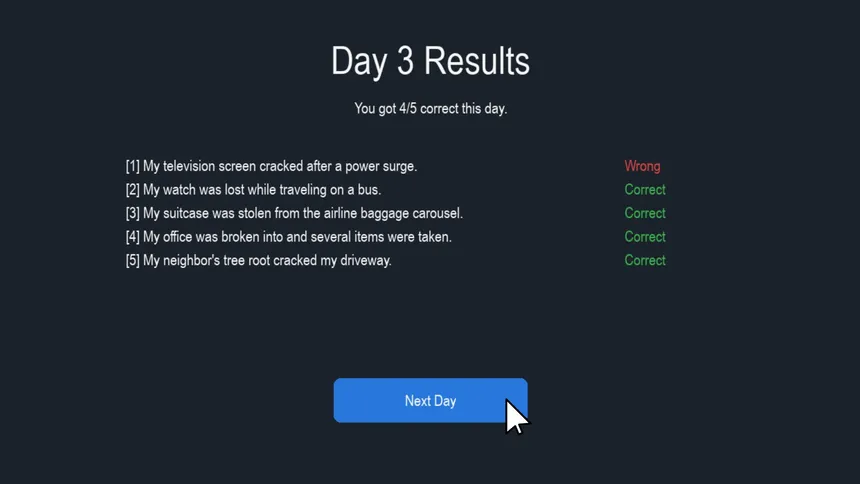 A fast paced clicking and paperwork simulation game where you race against time to process insurance claims, earn money, and beat your best score!