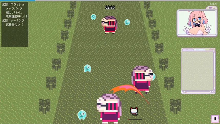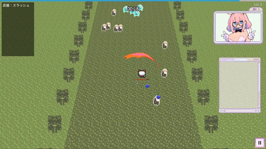 『妄想で逃げ切る。ノンストップ配信サバイバー』配信中のイライラを妄想の怪物へ変換して迎え撃つ、実況UI連動型の縦シューティングアクションゲーム。 害悪リスナーやアンチが敵として襲いかかる中、画面上を逃げ回りつつスキルで撃破し、ストレス値を正常にせよ! イライラ度が上がるほどゲームに影響がが現れ、凶悪かつ理不尽に襲いかかる。