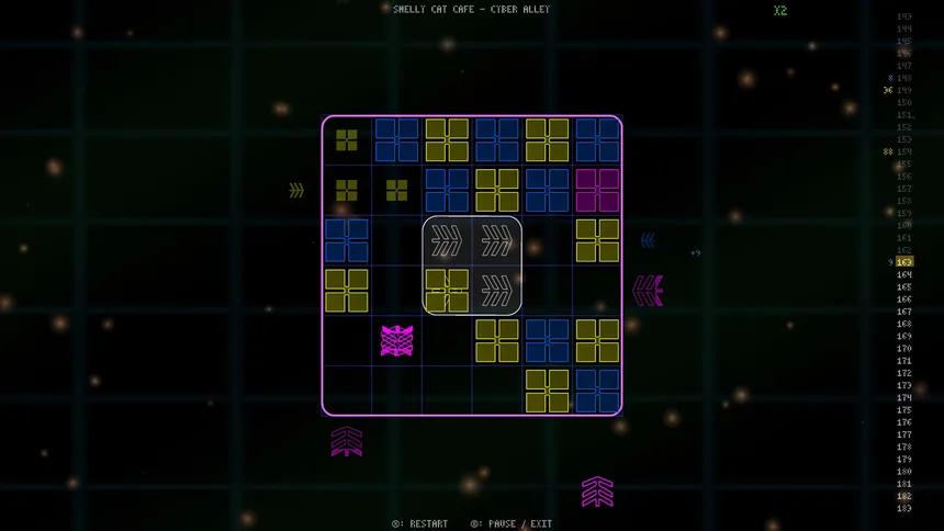 Pulse Grid is a rhythm-based spatial puzzle game where arrows spawn and move to the music's beat. Redirect them with a 2x2 control zone, create color matches from stopped blocks, and master the risk-reward combo system to dominate the leaderboards.