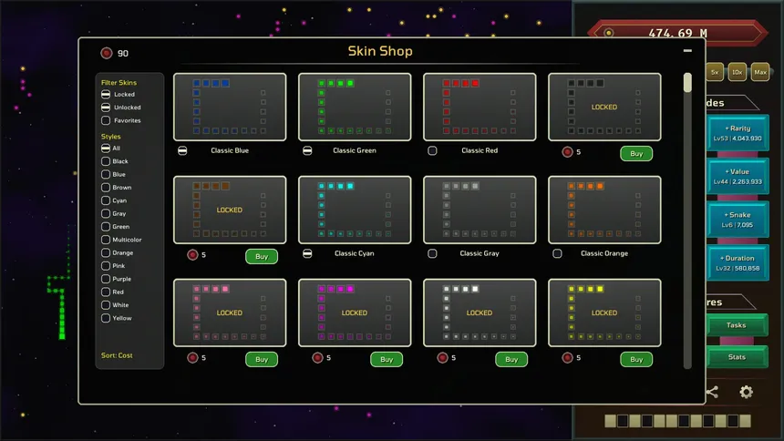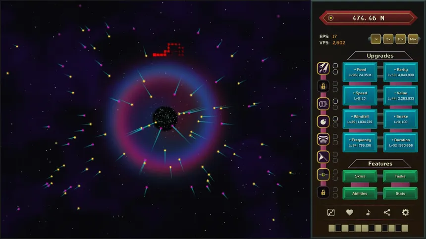 A relaxing idle game where you manage a snake. Watch it find food. Guide it. Make it faster. Grow its family.