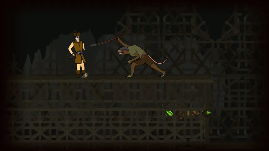 Short hand-drawn cinematic platformer about escaping from the lair of evil ratmen.