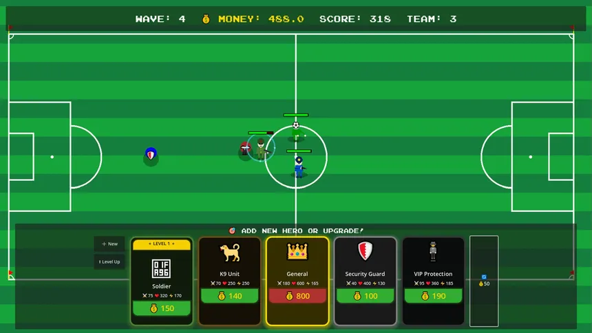 THE FOOTBALL WAR HAS STARTED! Thousands of raging fans are storming the field. Defend against the fan invasion! 30+ unique heroes and abilities, 50+ upgrade items, position your heroes strategically, crush the waves of fans!