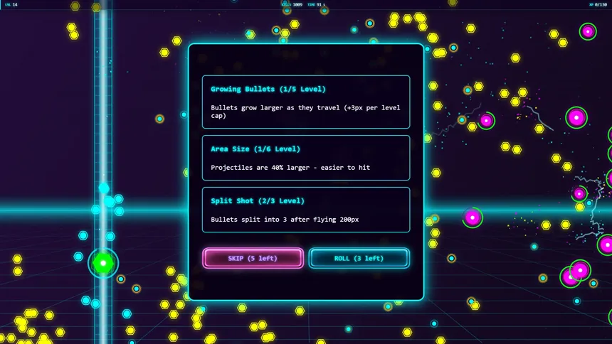 One-button bullet-heaven where a single shot mutates into neon chaos. Imagine Flappy Bird colliding with Vampire Survivors.