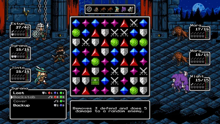 Puzzle Rogue is a roguelike homage to the original Puzzle Quest! Guide your party through the forbidden castle, gathering equipment and items to bolster their strength! Encounter enemies and battle them in 16-bit JRPG style gem-based combat!