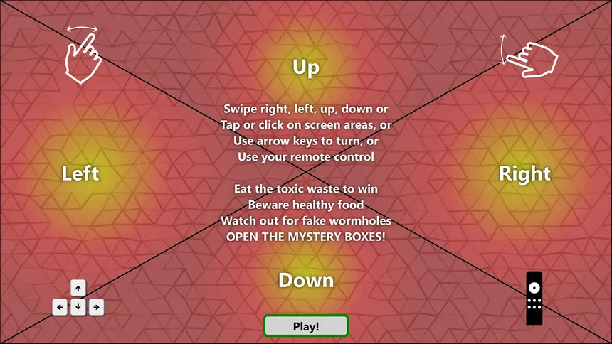 The Toxic Snavenger rides again in classic arcade snake action. Snarf up those toxic treats and used sneakers, while avoiding obnoxious health food. Beware the wormhole; the shortest path isn't always the safest, and it isn't always a straight line.