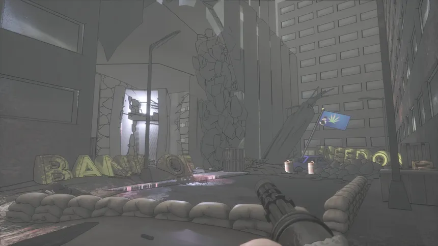 Toey Weedz Smoke Dead Mirror — это полноценная одиночная кампания, вдохновленная классическими ретро-шутерами. Вам предстоит пройти 9 разнообразных уровней, выполненных в уникальном стильном сеттинге с применением технологии сел-шейдинга. Вас ждут юмористические интермедии, чёрный юмор и откровенно нелепые персонажи, озвученные самим разработчиком. Готовьтесь к потоку абсурдных реплик и странных ситуаций!