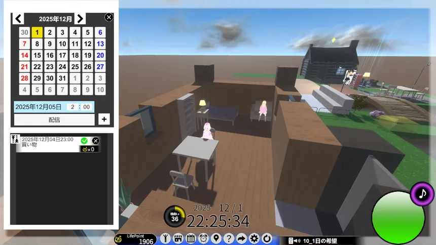 Симулятор жизни в вашем кармане не ограничивается лишь обустройством. Планируйте свои дела с помощью встроенного календаря, получайте уведомления прямо в игре и зарабатывайте очки за выполнение задач. А если вам нужна мотивация, установите таймер и возвращайтесь в мир Vらいふ, чтобы увидеть, как ваши персонажи живут своей жизнью, пока вы работаете или отдыхаете.