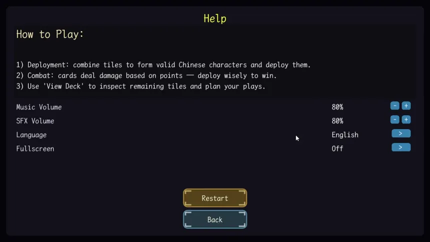 Игра предлагает инновационную механику, где умение строить слова напрямую влияет на исход боя. Балансируйте ограниченное количество слотов и размер вашей руки, чтобы создавать оптимальные комбинации и максимизировать эффект от каждого иероглифа. Ваша колода будет постоянно эволюционировать благодаря новым компонентам, полученным в битвах и магазине.