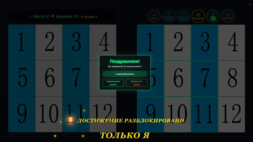В ПазлТвист вас ждут четыре режима: Легкий, Средний, Сложный и Ад. Легкий режим станет отличной отправной точкой, а уровни Среднего и Сложного потребуют от вас логического мышления и аналитических способностей. Первые три уровня Легкого режима зафиксированы для обучения, но затем игра генерирует случайные головоломки, гарантируя уникальный опыт при каждом запуске. Это значит, что вы всегда сможете найти новый вызов, даже если пройдете игру несколько раз.