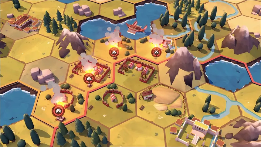 Выбирайте свой путь: дипломатические переговоры и выгодная торговля или захват территорий и доминирование. Давление на вражеские территории с помощью военных зданий – первый шаг к победе. После трех ходов вражеская земля станет вашей, принося славу и ресурсы.