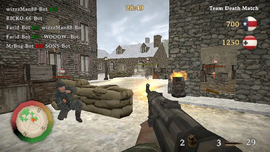 Ретро-WW2 FPS с графикой в стиле PSX, вдохновлённый классическими шутерами. Сражайся онлайн до 24 игроков или играй полностью один против умных ботов на нескольких картах.