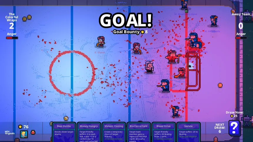 A sports game where you don't control the players, instead play as a shady coach and use your deck of dirty tricks to become season champion. A unique hybrid of roguelike deckbuilder, auto-battler, and high action arcade hockey.