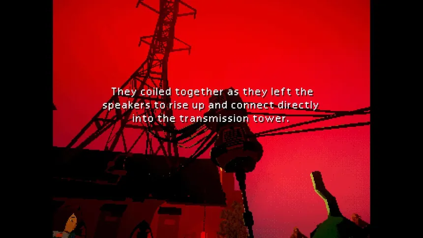A surreal narrative adventure set on the night Tamarack Narrows collapses into static, fire, and aurora. Follow Sarah, Bree, and the townsfolk as an unknown visitor arrives promising salvation. A lo-fi, analog-horror