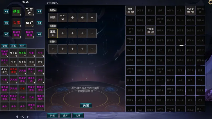 В 挂机武侠 доступно более 50 героев, каждый со своими уникальными навыками. Комбинируйте более 200 способностей, чтобы создать идеальную сборку для каждого региона и максимально эффективно расправиться с противниками. Повышайте рейтинг звезд ваших героев и открывайте новые возможности!