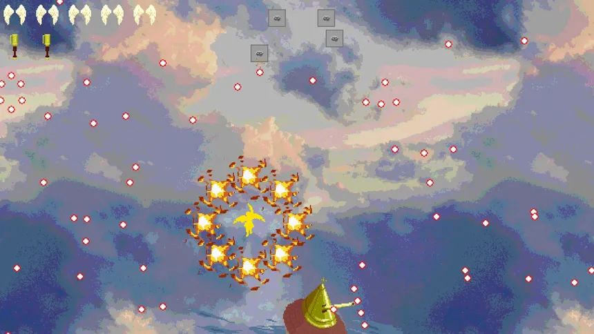 Follow two gun-wielding angels as grace shatters, bullets fly, and a civil war unfolds in Heaven. Shoot and dodge through relentless waves of demons, uncover skill-based secrets, and master this tight, challenging retro game. Survive the bullet hell and restore the bullet heaven!