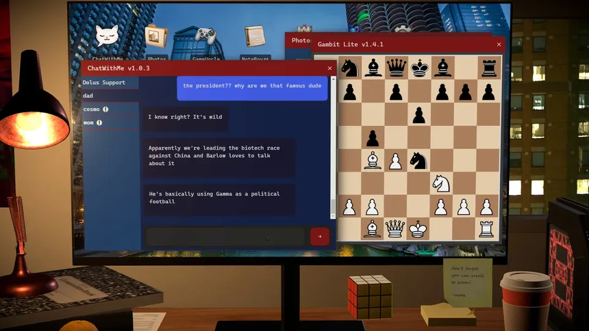 “My New Computer” предлагает уникальную свободу общения: говорите все, что приходит в голову! Никаких заготовленных диалогов или ограничений — вы можете злиться, рассуждать о серьезных вещах, делиться секретами или даже спорить о пицце с ананасами. Ваши родители и лучший друг Космо готовы выслушать (или попытаться). И не забывайте, у вас есть Gambit Lite — шахматы, чтобы немного переключиться.