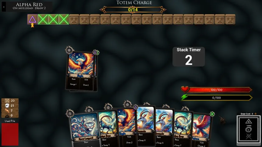 Основа геймплея – построение мощных комбо-цепочек из карт. Сочетайте карты в колоде, чтобы вызывать разрушительные эффекты, а также следите за шкалой TOX – правильное управление ею позволит вам не остаться без действий в самый ответственный момент. Активируйте ключевое слово "Заряд" для усиления Тотемов и приближайте победу.