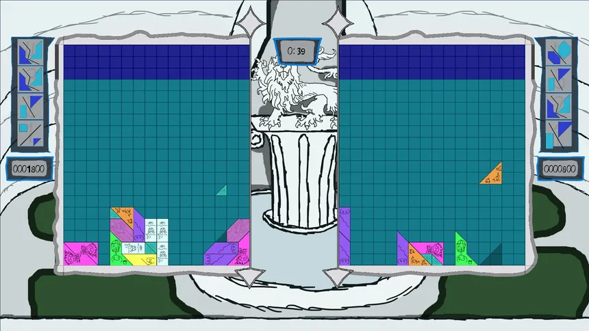 A colorful, fast-paced symmetry-based arcade puzzle game inspired by Puyo Puyo and Tetris. Features a lighthearted story and gameplay that emphasizes space management, speed and strategy.