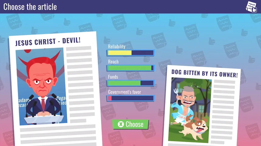 Build a true fake news empire. Fabricate interviews, twist the truth, hire on-air stars - and remember: Reliability first! (as long as it gets clicks…)
