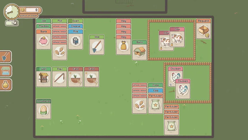 Tiny Card Farm is a cozy farming card game where you grow plants, raise animals and process your products by stacking cards. Discover new technologies, buy upgrades, complete tasks and become a prosperous farmer!