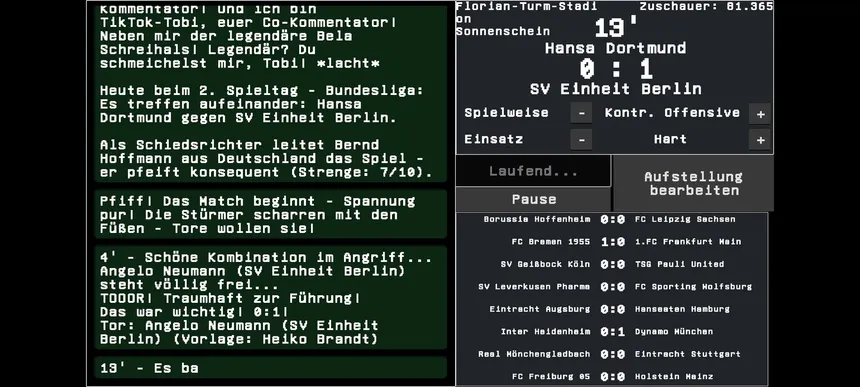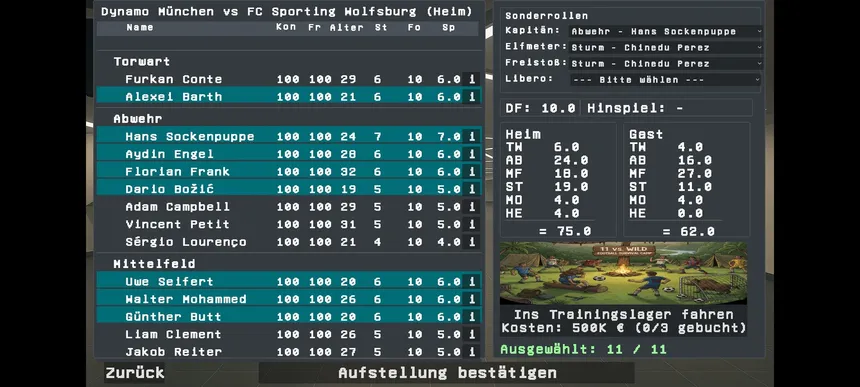 Whistle1 is a retro football manager in 90s style. Manage a German 1st league club, handle transfers and training, and lead your team through league, cup and European competitions to glory.