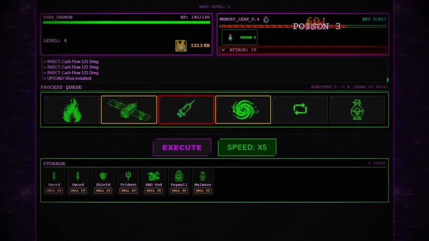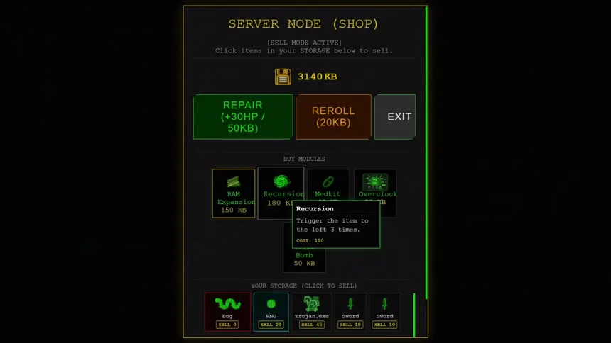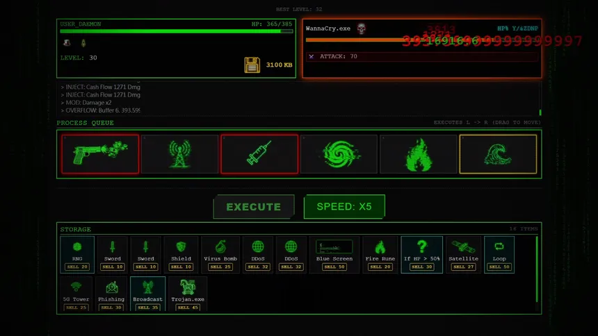 Компилируй, Выполняй, Перегружай.Хакерский Roguelite,испытывающий твою логику.Перетаскивай модули, чтобы выстроить последовательность атаки, устанавливай программы.EXE, чтобы нарушать правила,и сразись с легендарными вирусами, такими как ILOVEYOU и WannaCry. Сможешь ли ты обрушить систему и сбежать?